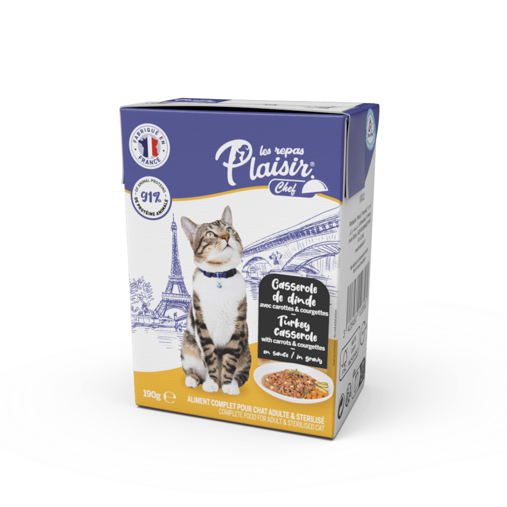 Des effilés avec 30% de dinde cuisinés avec ses petits légumes dont raffolent les chats, c'est un régal pour les yeux et les papilles ! Il n'en restera pas une miette.
