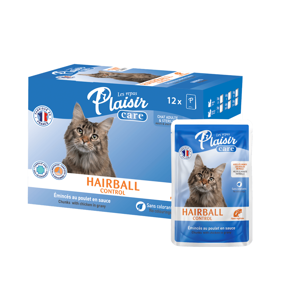 Contrôle des boules de poils Cette recette contribue au bien être de votre chat, en l'aidant à évacuer les poils ingérés et en réduisant ainsi l'apparition de boules de poils.