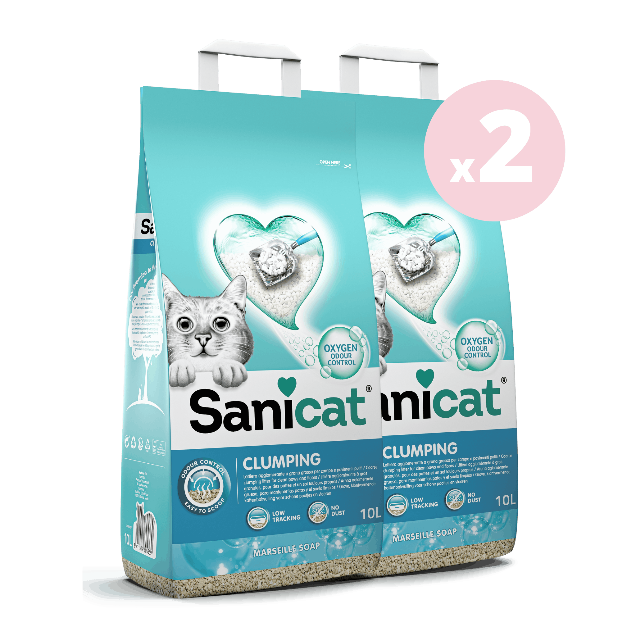 La litière Sanicat clumping est une litière agglomérante enrichie à l'oxygène actif pour un meilleur contrôle des odeurs et une hygiène optimale. Elle dégage un subtil parfum de savon de Marseille pour une sensation agréable de fraicheur et de propreté continue.